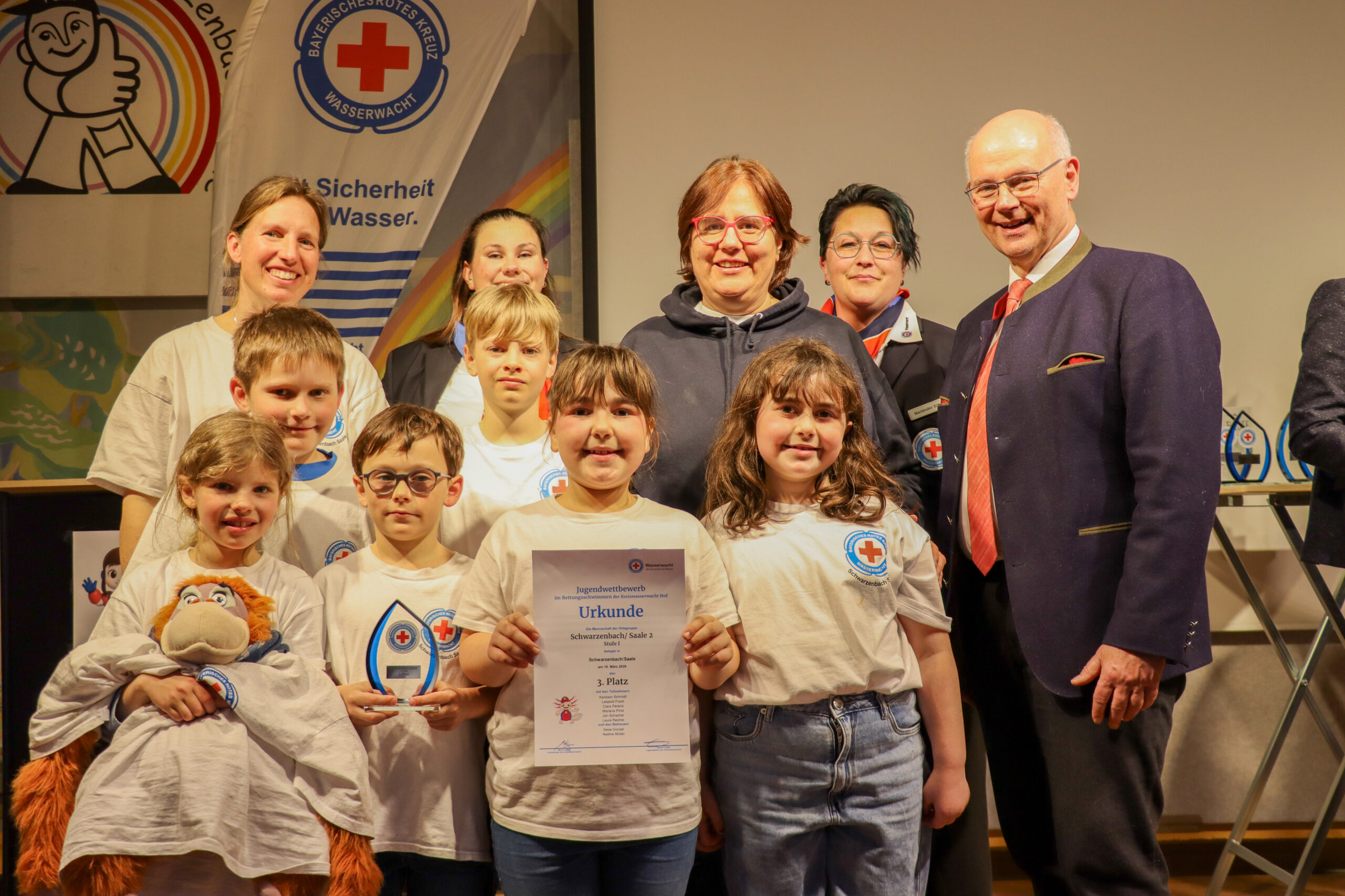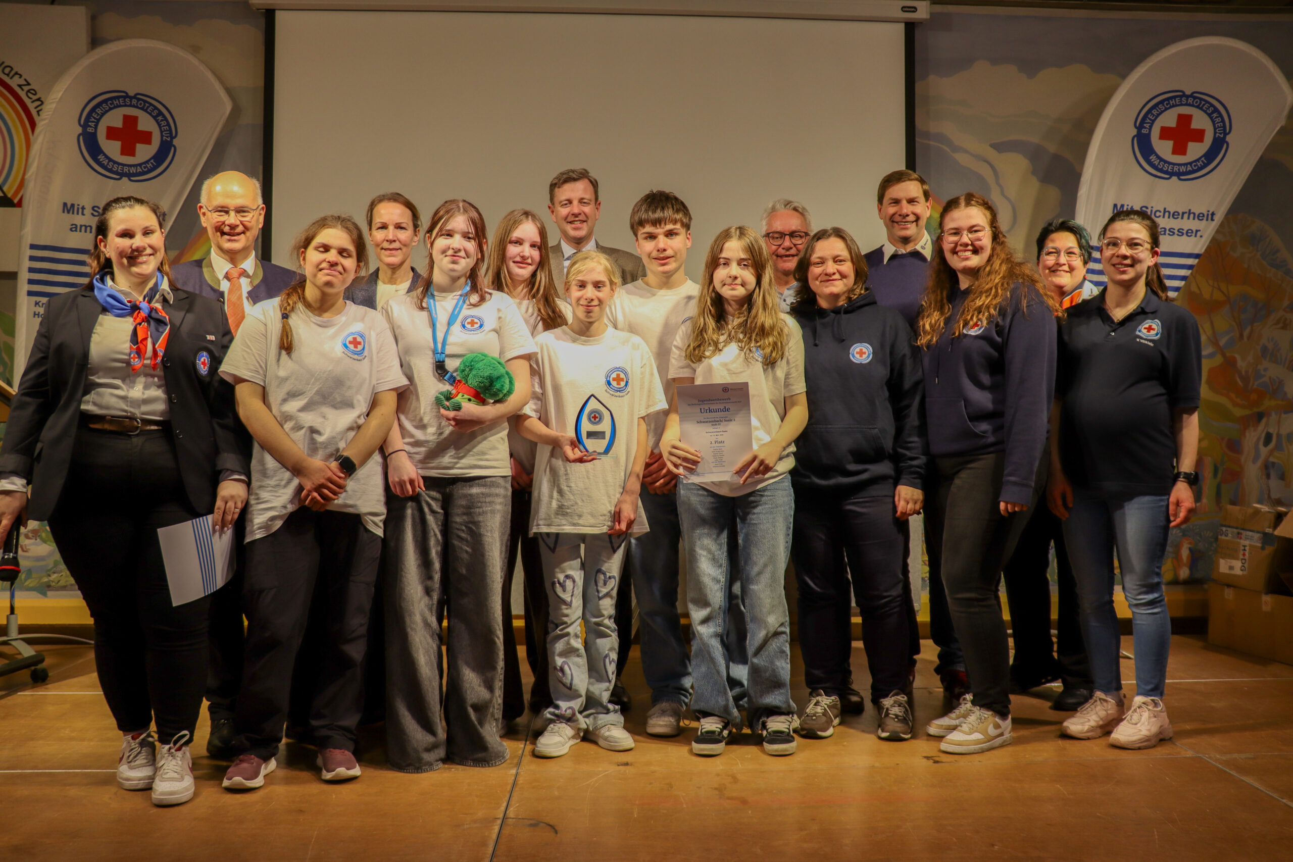 Besonders erfolgreich verlief der Wettbewerb für die Ortsgruppe Schwarzenbach an der Saale, die in allen drei Altersstufen den ersten Platz belegte und damit die Kreiswasserwacht Hof auf Bezirksebene vertreten wird. Aber auch die weiteren Teams, darunter eine Mannschaft aus Münchberg sowie zwei Gruppen aus der Ortsgruppe Hof, zeigten starke Leistungen und trugen zu einem gelungenen Wettbewerbstag bei.