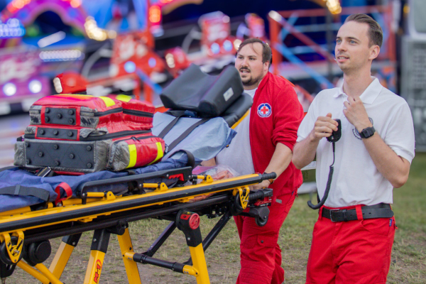 Aber Wasser ist nicht alles. Auch an Land sind wir da, wenn’s drauf ankommt: Sanitätsdienste auf Events, Erste Hilfe am Förmitzspeicher oder Reanimation im Ernstfall – unsere Leute wissen, was zu tun ist. Sogar Defibrillatoren setzen wir ein, natürlich nur von speziell geschultem Team. Alles gesetzeskonform, alles mit Know-how.