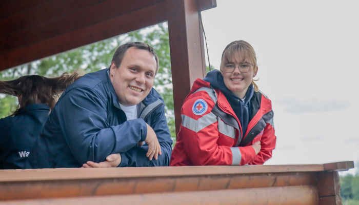 dich betreuen, beruhigen und sicher versorgen, bis der Rettungsdienst übernimmt